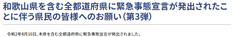 和歌山県を含む全都道府県で非常事態宣言が出されました。