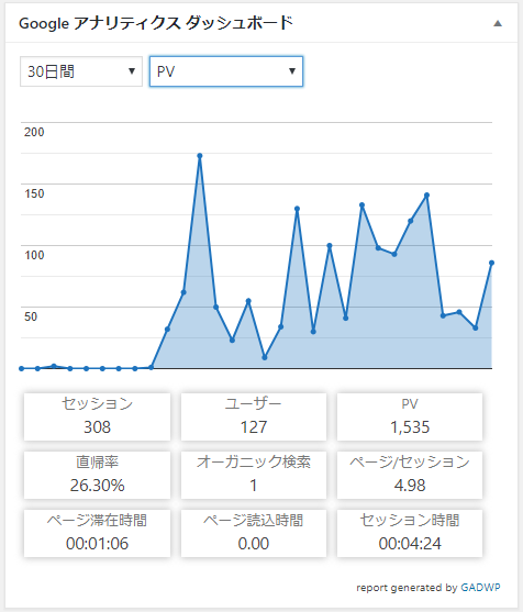 このブログの最初の1ヶ月のページビューは1500でした。この1500という数字はかなり少ない数字のようです(T_T)。月間1万PVを目標に続けたいと思います。
