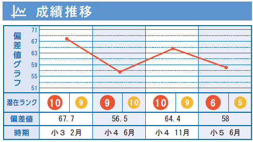偶然でしょうが、算数と国語の偏差値の動きが逆ですね。