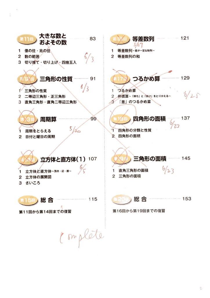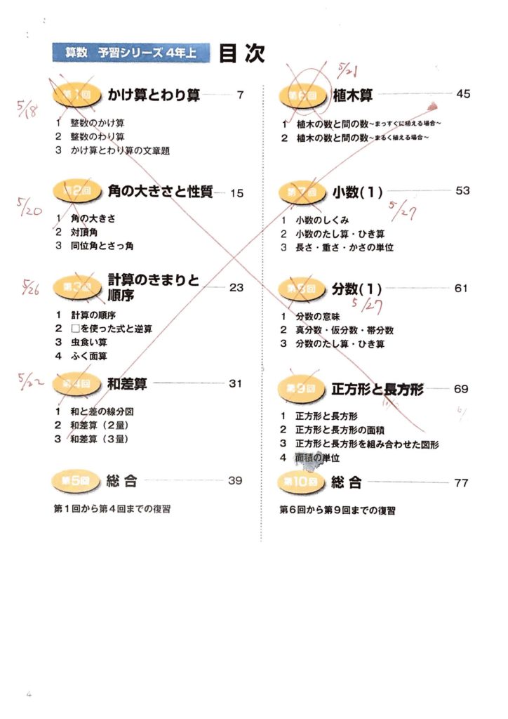 4年生後半の6ヶ月で先取り学習を終えました(小学4年の5月18日から12月29日まで) 。