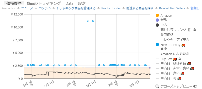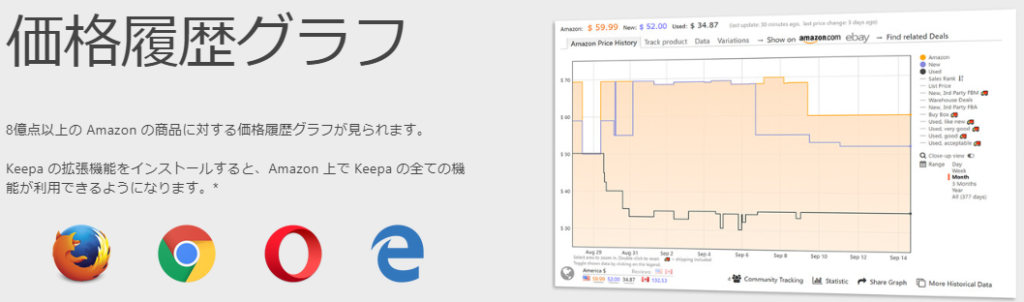 「Keepa – Amazon Price Tracker」というブラウザの拡張機能があります。Amazonの商品ページを開くだけで、価格の推移が表示されます。大変便利なので、Amazonで買い物される方には強くおすすめします。