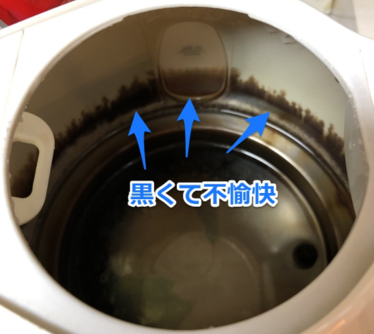我が家の電気ケトルを改めてみてみると、電気ケトルの内側に水アカがついています。不潔なものではないとは思いますが、気分のいいものでもありません。