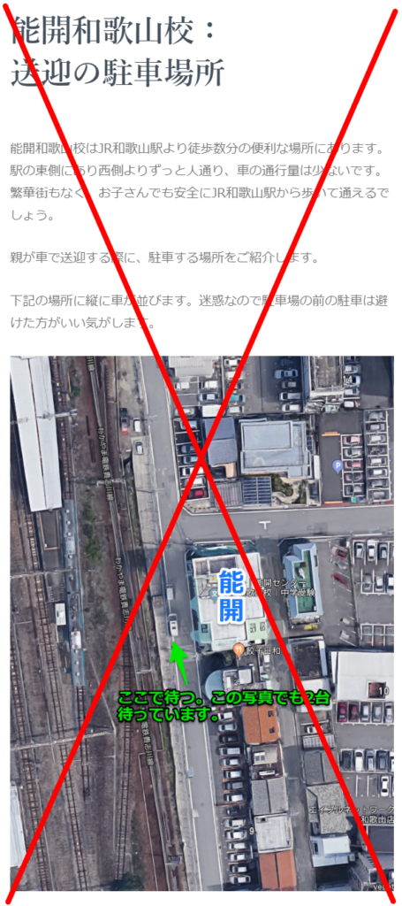 能開和歌山校には駐車場がありません。ですので、送迎は路上駐車になります。